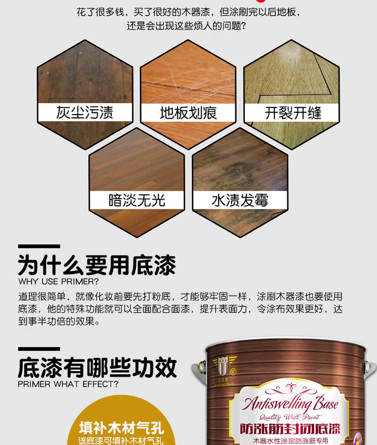 官方正品水性木器漆防涨筋防毛刺防渗色封闭底漆木质无味透明底漆